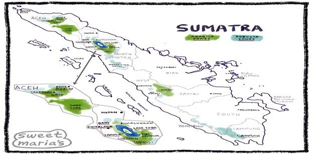 Along with Sulawesi, Java, Bali and Flores, Sumatra is one of the 5 coffee producing islands in the 17,000-island archipelago nation of Indonesian. 120 nautical miles due west of Singapore and only .19 nautical miles due north of Java, Sumatra is around the size of Texas, California and Louisiana combined granting it status as the largest island in the archipelago and the 6th largest island in the world. This is the 4th Indonesian coffee introduced in our selection and there is a reason… all are unique and delicious. Our coffee comes from a cooperative of farmers in the Gunung Tujuh area of Jambi Province, around 570 miles south of the Sumatran capital Medan, and in the zone around the 12,484-foot Mount Kerinci volcano, which is the tallest both in Indonesia and of any island associated with the Asian Continent. “Pendekar”, translated “warrior”, is a term of endearment among cooperative members when praising exemplary work. Indonesian coffees are characterized as earthy and rustic with low acidity, however, our warrior coffee is quite different. Due to the higher slopes of the Gunung Tujuh region and wet processing, as opposed to traditional wet-hulled processing, there are almost no earth tones and significantly noticeable acidity. Great thanks to the gentle “Warriors” of Sumatra and may you feel their spirit in each cup.